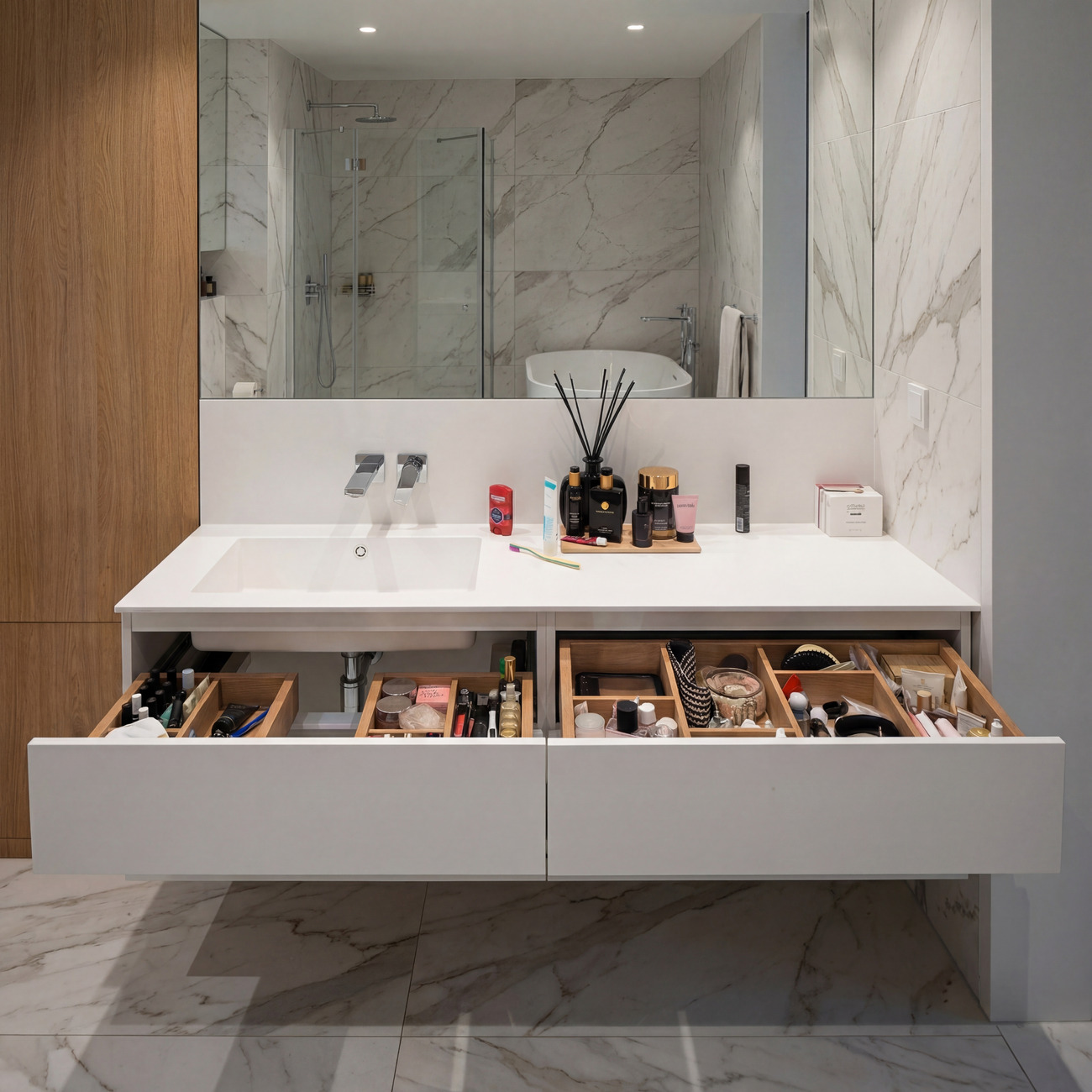 Skrinky pod umývadlá, vysoké skrinky, zrkadlové skrinky, LED zrkadlá, dosky a doplnky.