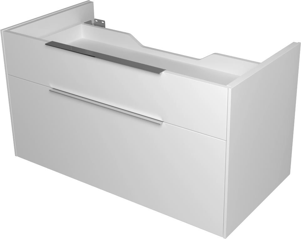 Skrinka THIN BEZ HD do 1000 mm s dvoj-zásuvkou je ideálnym riešením pre moderné kúpeľne, kde je potrebné efektívne využiť priestor a zároveň zachovať minimalistický dizajn. Táto kúpeľňová skrinka zo série THIN ponúka praktické úložné riešenie pre nábytkové umývadlá s šírkou do 1000 mm.