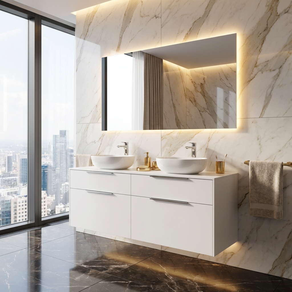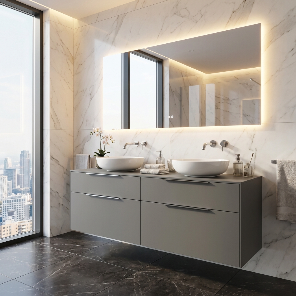 - CNC výrezy: Pri skrinkách s hornou doskou sú pripravené presné výrezy pre umývadlo a batériu, čo zjednoduší montáž.