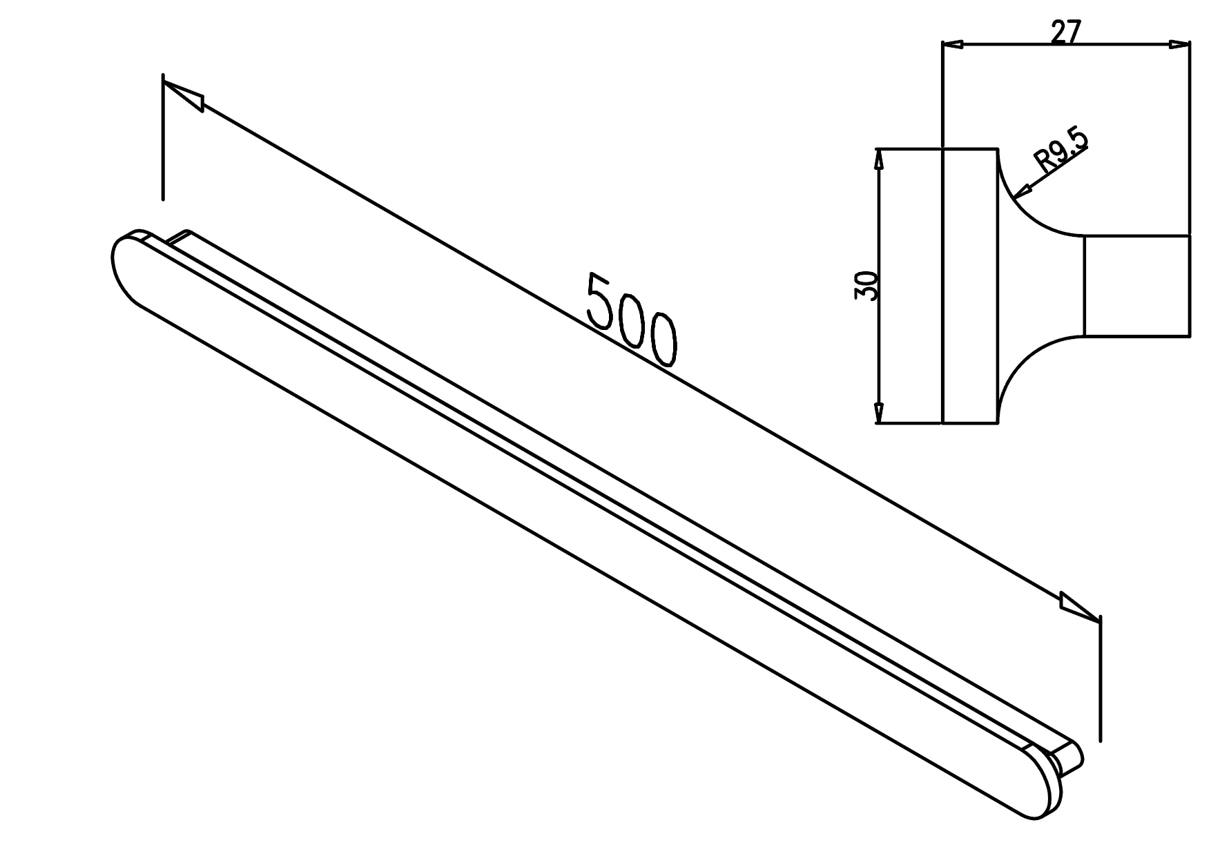 Rozmery ŠxVxH v mm: 500x30x27