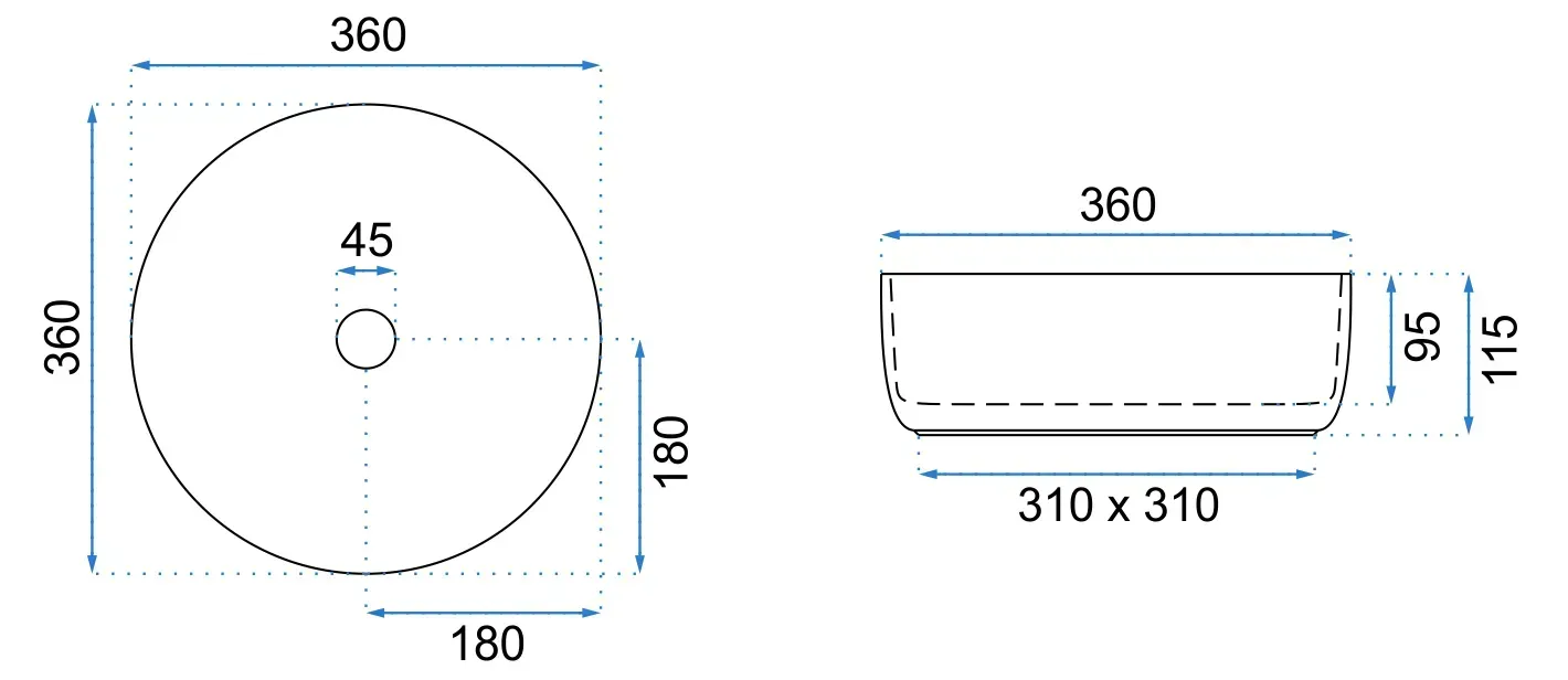 Umývadlo na dosku Rea SAMI L.BLUE SHINY