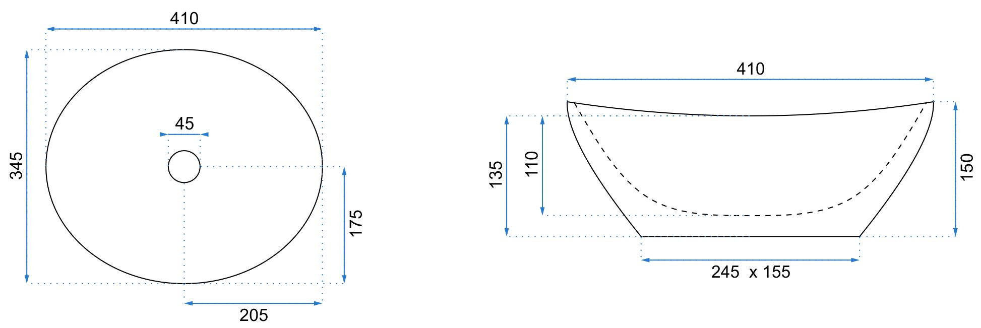- Rozmery: Dĺžka 410, Šírka 345, Výška 150