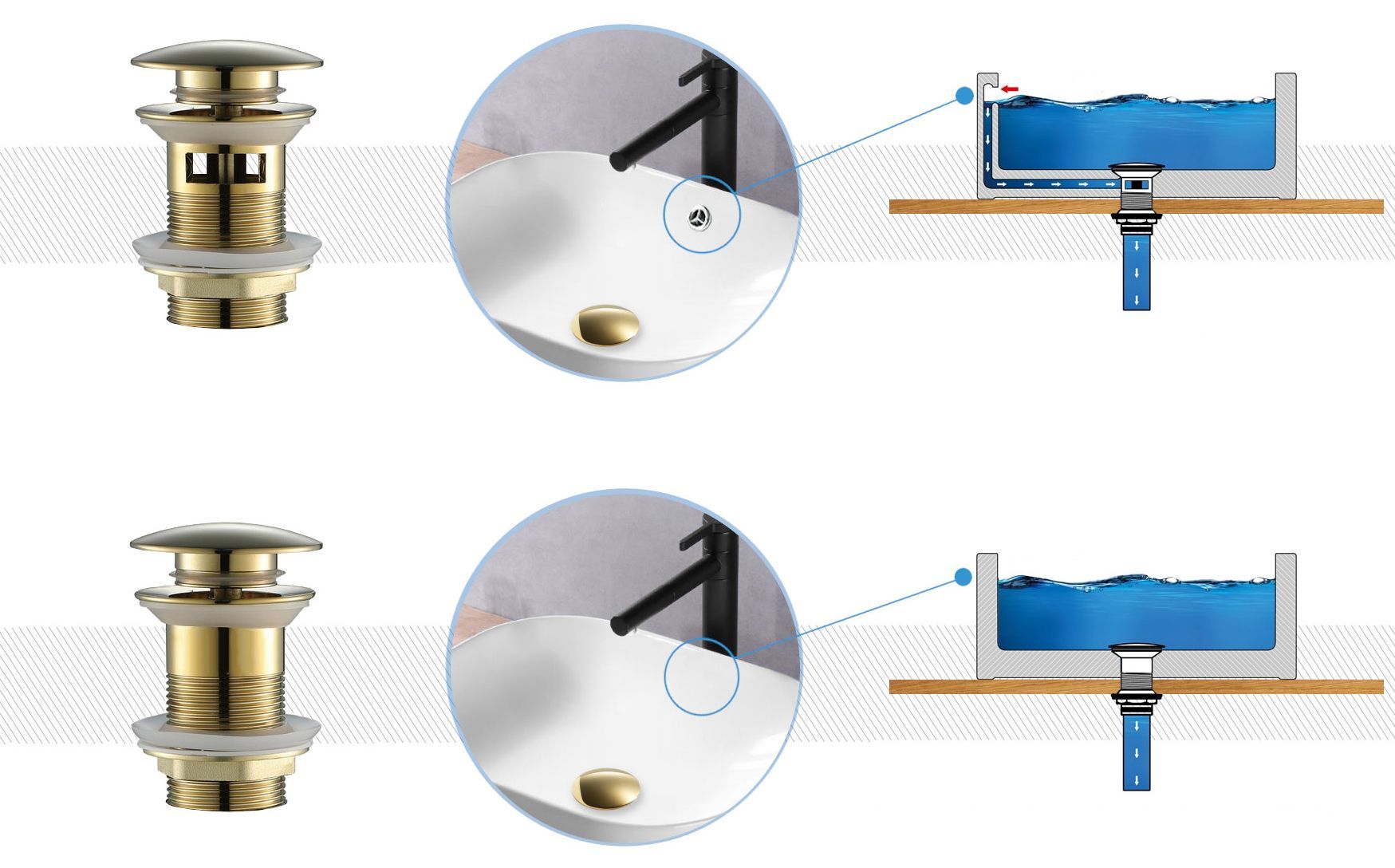 Umývadlový sifón Rea so zástrčkou klik-klak Gold