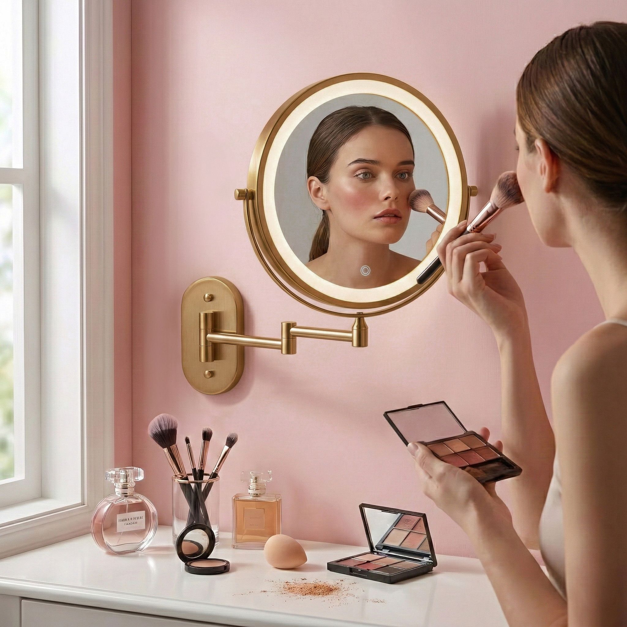 Nástenné kozmetické LED zrkadlo je praktické a elegantné riešenie ideálne do kúpeľne, šatníka alebo k domácemu toaletnému stolíku. Tento obojstranný model na sklopnom ramene je neoceniteľnou pomocou pri líčení, holení a presnej starostlivosti, spájajúc moderný dizajn s vysokou funkčnosťou. Obojstranná plocha (zväčšenie 3×) – jedna strana poskytuje štandardný odraz, druhá trojnásobné zväčšenie. Otočný kotúč o 360° umožňuje rýchlu zmenu strany. LED osvetlenie s reguláciou – integrovaný svetelný rám ponúka tri farby svetla: teplú, neutrálnu a studenú. Dotykové tlačidlo umožňuje plynulé stmievanie a zosvetľovanie. Pohodlné USB nabíjanie – vstavaný akumulátor sa ľahko nabíja pomocou priloženého kábla USB Type-C. Osvetlenie funguje bezdrôtovo, bez trvalo visiaceho kábla. Kĺbové rameno – pevná konštrukcia umožňuje zrkadlo približovať, odďaľovať a skladať naplocho k stene. Kĺby poskytujú voľnosť nastavenia ideálneho uhla. Oceľová konštrukcia – odolná oceľ zaručuje stabilitu pri používaní a estetická povrchová úprava dodáva moderný, elegantný vzhľad. Optimálna veľkosť – priemer 20 cm predstavuje ideálny kompromis medzi pohodlím a úsporou miesta. Moderné kozmetické zrkadlo na ramene citeľne zvyšuje komfort každodennej starostlivosti. Premyslená konštrukcia, výborné osvetlenie tváre a bezdrôtová prevádzka z neho robia pohodlnú a univerzálnnu voľbu do interiéru.