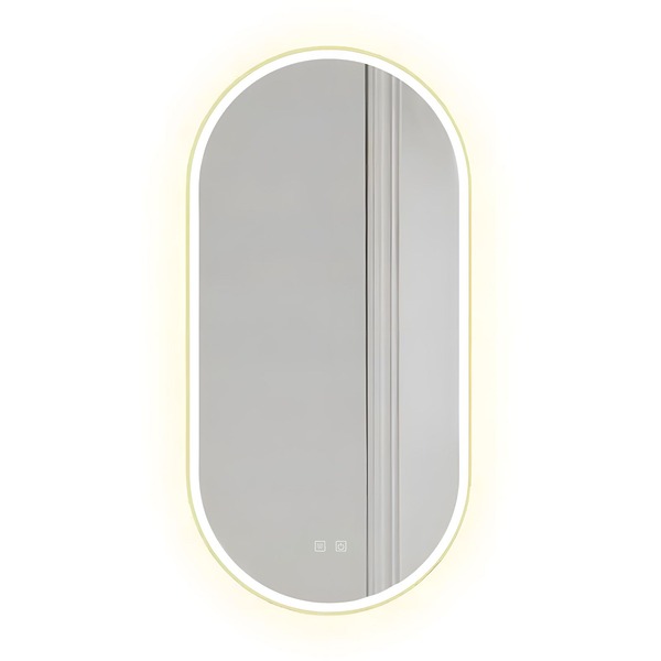 Asymetryczne lustro z podświetleniem Led to idealna propozycja dla tych którzy cenią sobie wygodę użytkowania oraz nowoczesny design. Lustro jest wykonane z najwyższej jakości materiałów, idealnie się prezentuje oraz jest bardzo wytrzymałe. Posiada do wyboru trzy zmieniane dotykowo barwy światła Led – ciepła, neutralną i zimną oraz funkcję podgrzewania zapobiegającą zaparowaniu powierzchni. Przytrzymując palcem podświetlony przycisk na panelu dotykowym możesz regulować intensywność mocy światła. Przewód zasilający w kolorze białym o długości 110cm.