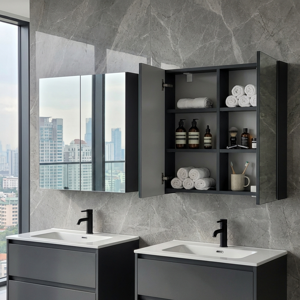 Okrem praktickosti zrkadlová skrinka dodáva kúpeľni aj estetický vzhľad. Zrkadlový povrch opticky zväčšuje priestor a odráža svetlo, čo vytvára príjemnú atmosféru. Skrinka je ideálna pre rodiny, páry, alebo jednotlivcov, ktorí hľadajú kvalitné a funkčné riešenie pre svoju kúpeľňu.