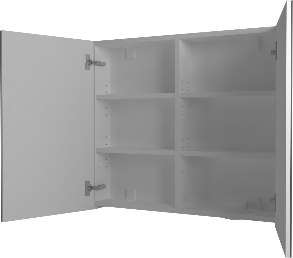 Táto zrkadlová skrinka je vybavená dvoma dverami, ktoré sa otvárajú smerom von, a poskytujú tak jednoduchý prístup k obsahu. Vďaka kvalitnému kovaniu Blum sa dvere otvárajú hladko a ticho, čo zaručuje komfort pri každodennom používaní. Skrinka ponúka dostatočný úložný priestor pre všetky vaše potreby v kúpeľni, čím prispieva k lepšiemu usporiadaniu a prehľadnosti.
